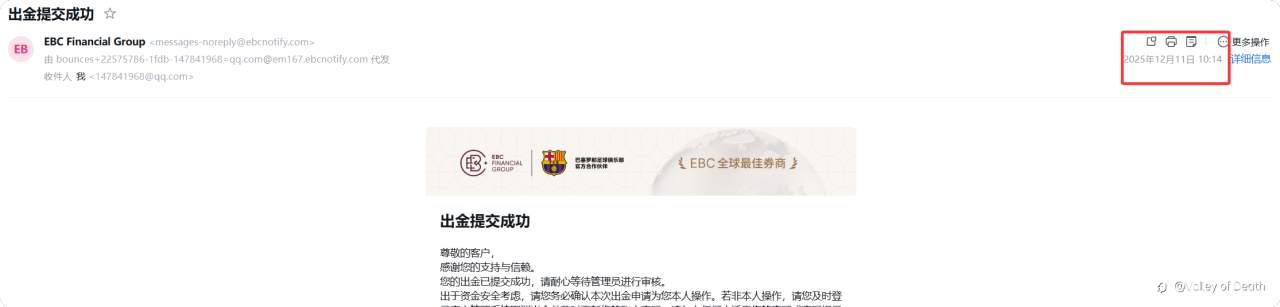 好久没出过金了,胆战心惊的!没想到 基本秒到账了,出金申请是十点十四分提交的!钱是十点22分到的!给ebc点个赞!