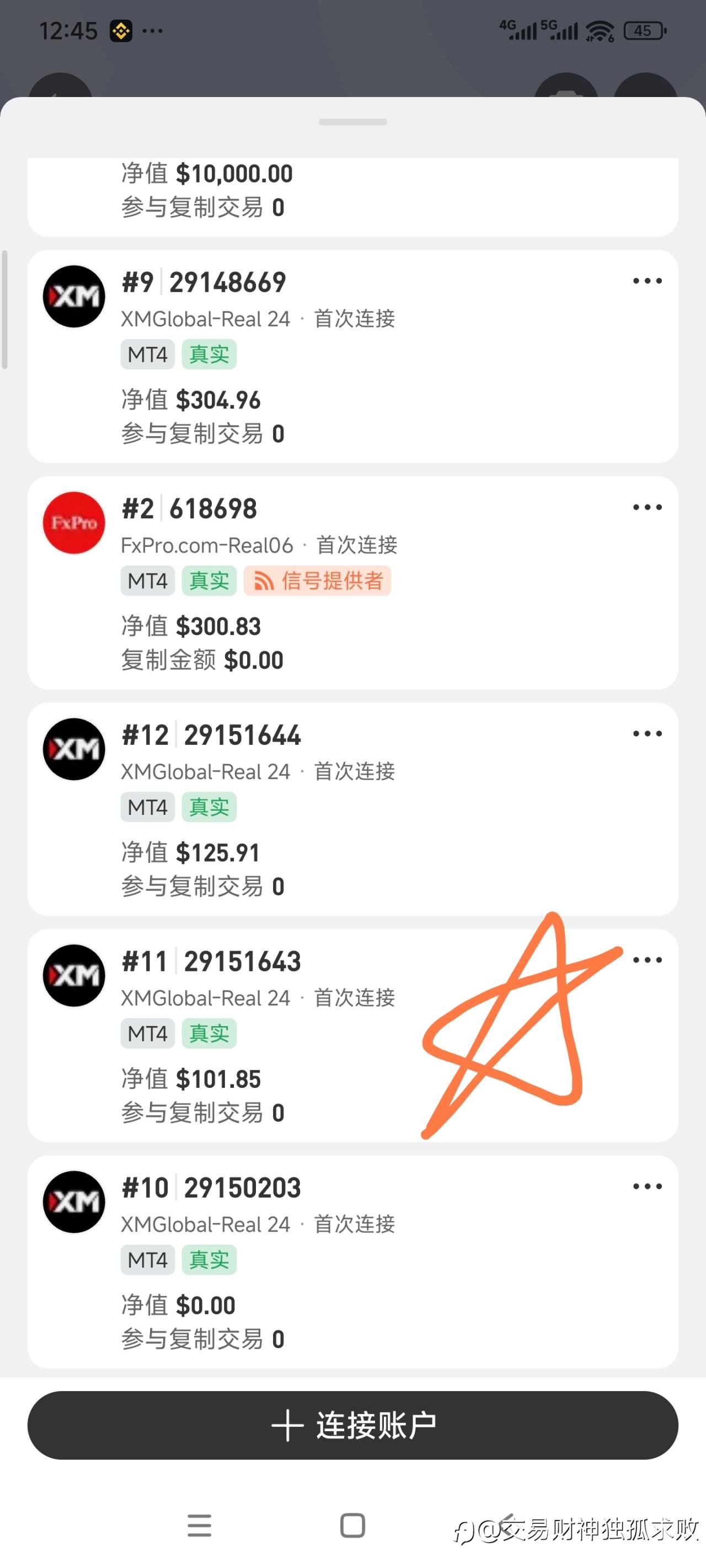 一周各帐户净值增减情况!