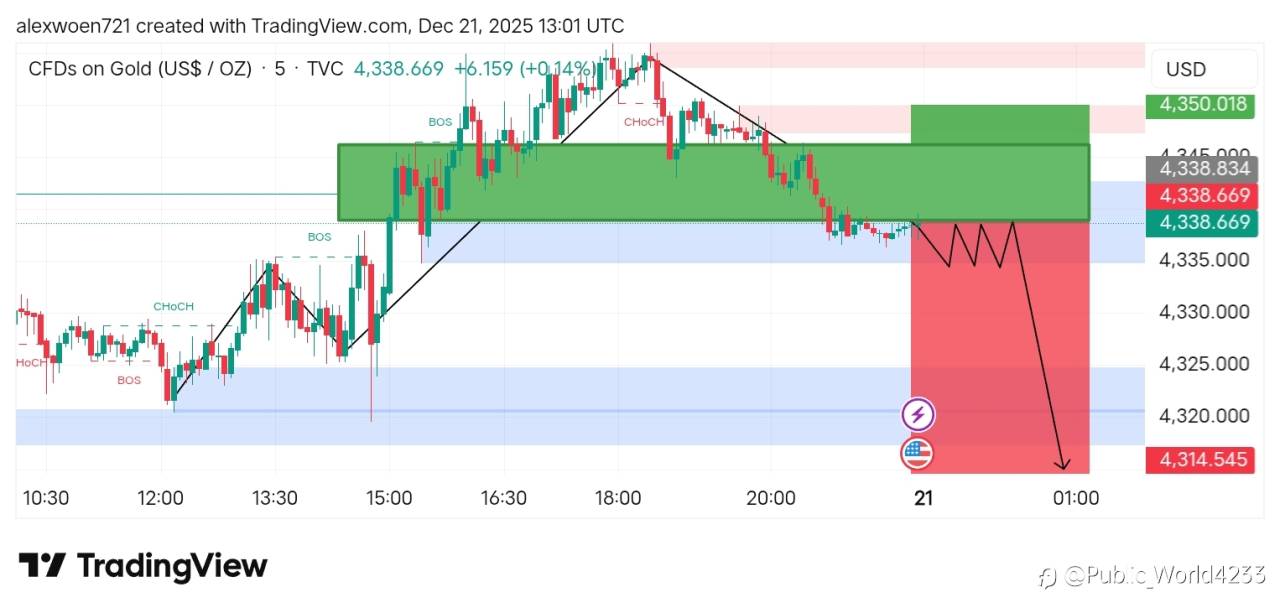 1. *Price movement*: Gold is trading at 4,338.669 USD/oz with a +0.14% change (+6.159).