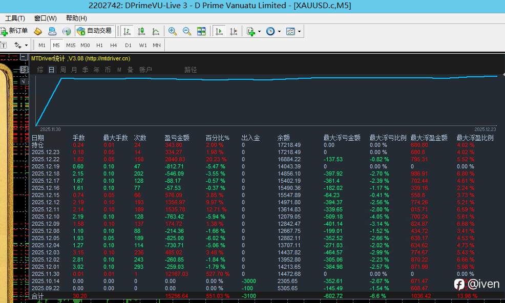 目前右侧类策略一共有两个展示账号doo账号 一个本金5000 耗时四个月 目前出金3100 净值还剩17200+