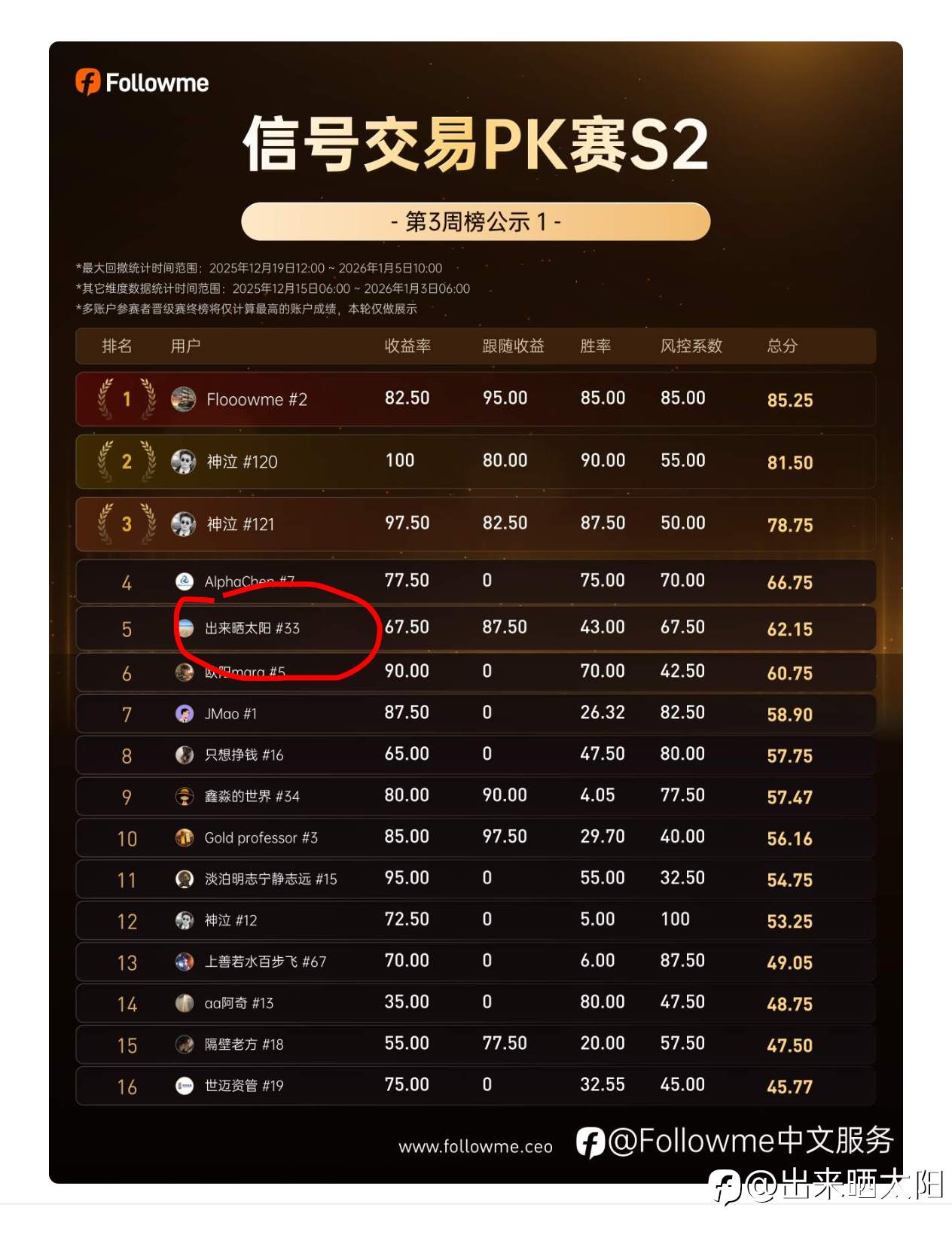 社区官方信号联系PK赛S2:目前第五名。