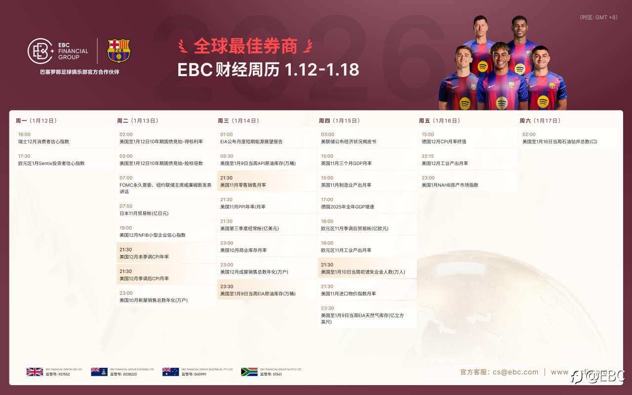 EBC交易前瞻|财经周历:2026.1.12-2026.1.18