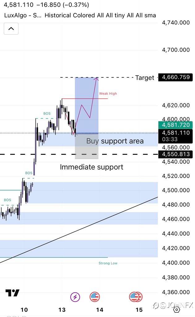 If support holds, prices could rise to 4630 and potentially extend to 4650.