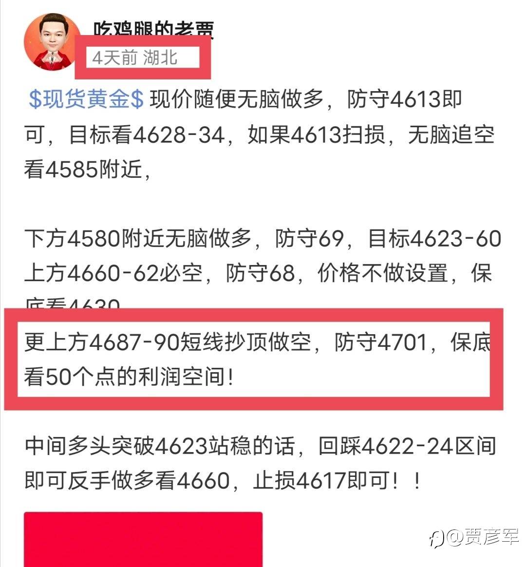 $现货黄金#XAU/USD# 4687-90空单提前4天挂单,周一打开电脑就直接收割!!