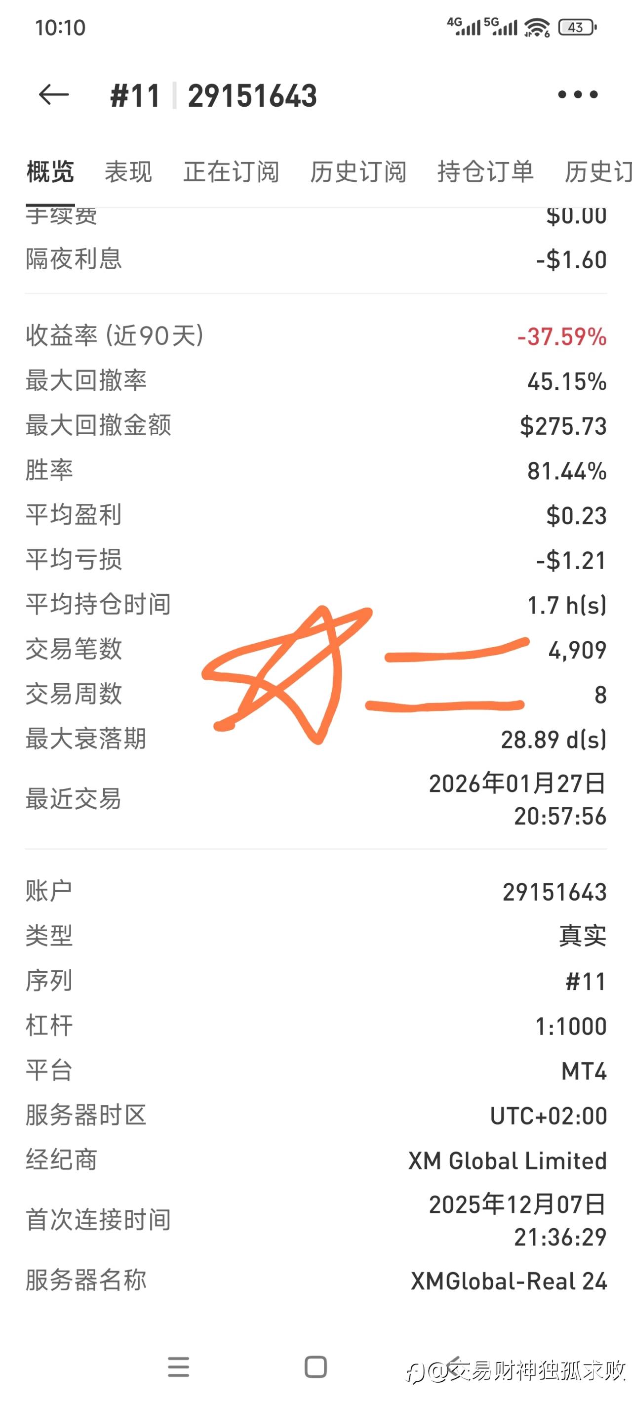 11号帐户净值,及已做的笔数。