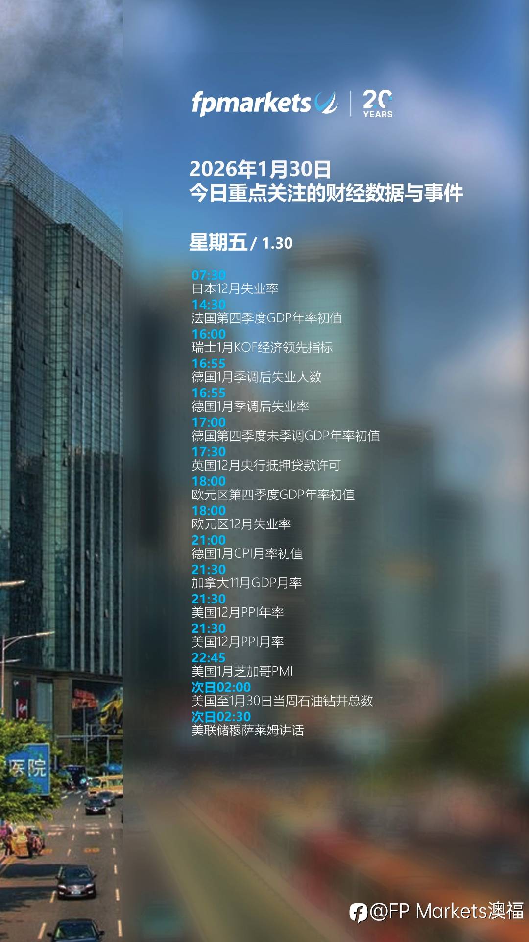 【FP Markets今日重点关注的财经数据与事件:2026年1月30日 周五】#FPMarkets澳福#