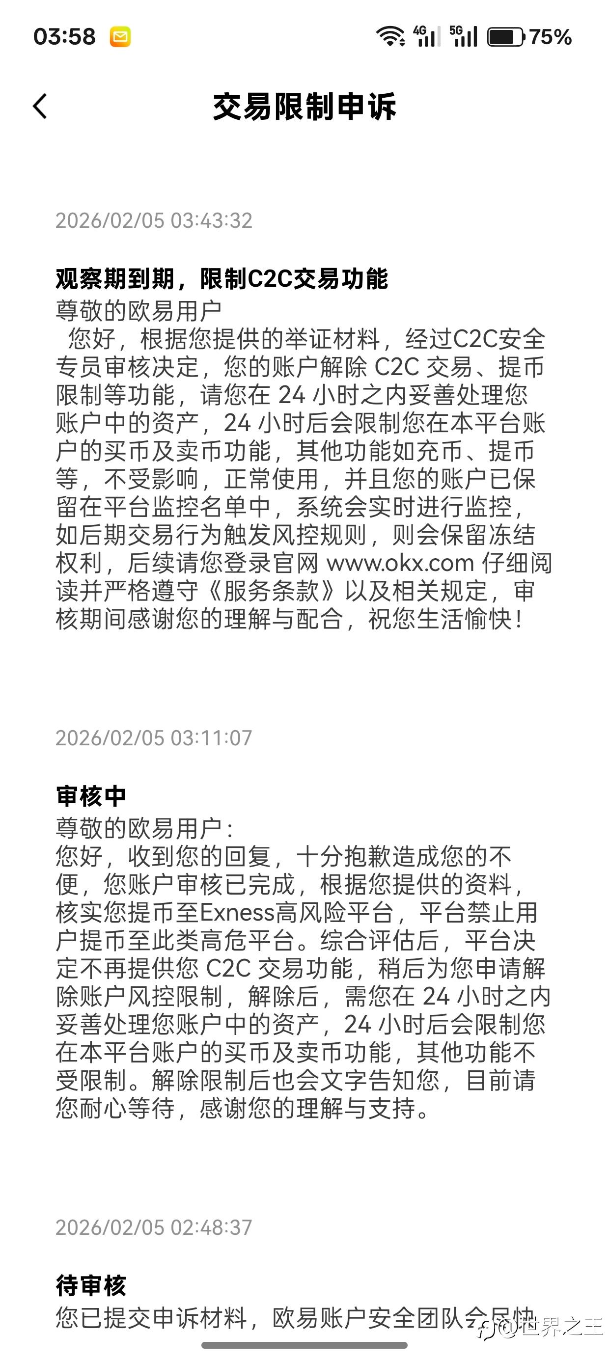这游戏真不是人玩的 充值到ex地址 欧易被限制永久c2c了 各位引以为鉴 小心充值 太频繁充值会自动风控 然后人工判定