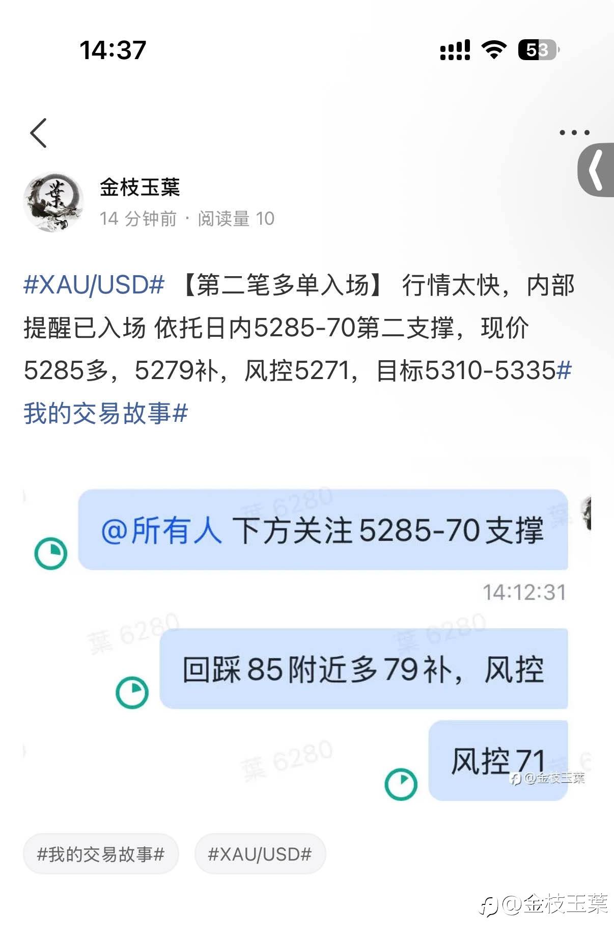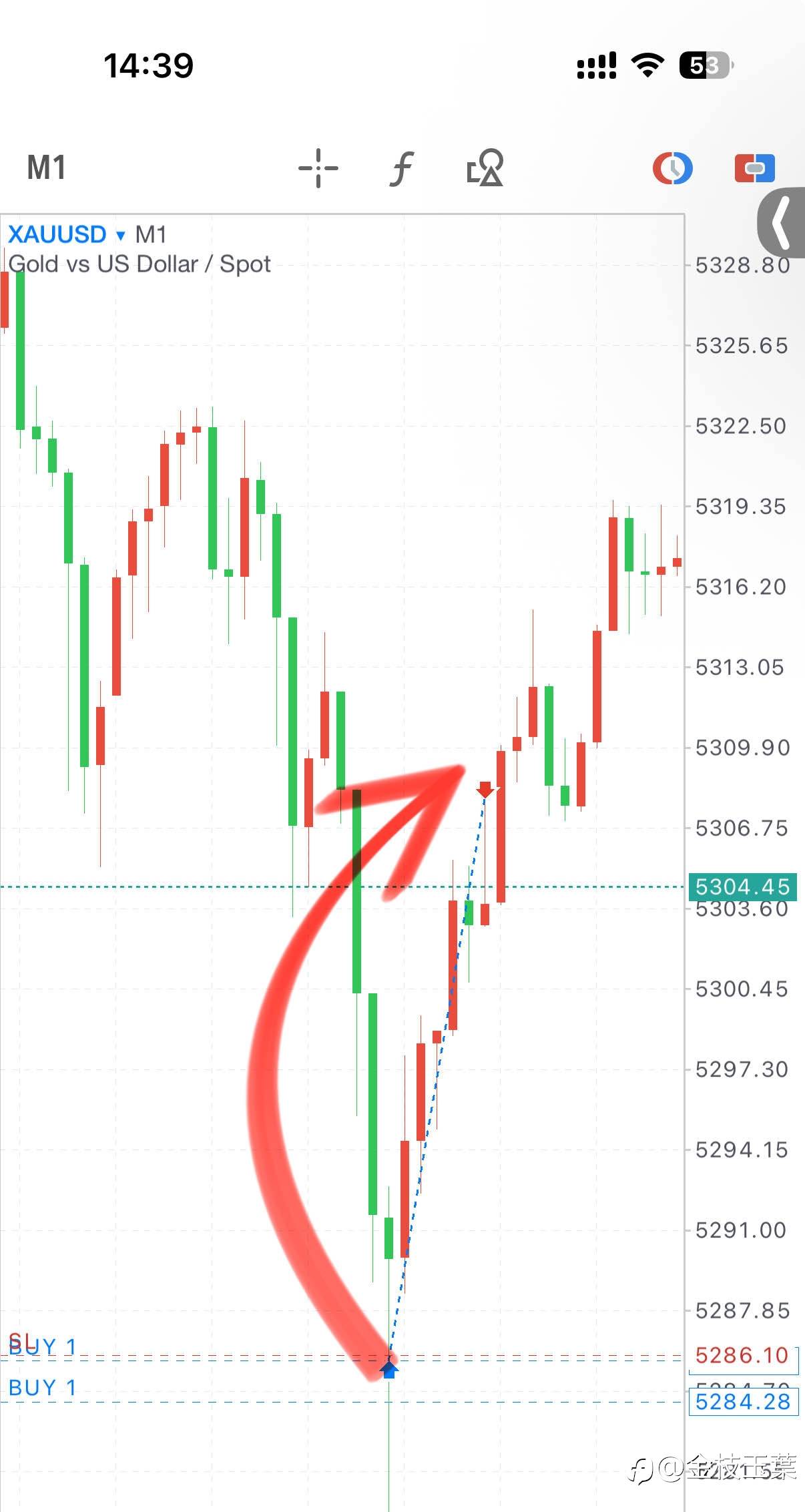 下方1小时下轨支撑有效,保留5285半仓继续上看第二目标5335#我的交易故事# #交易晒图#