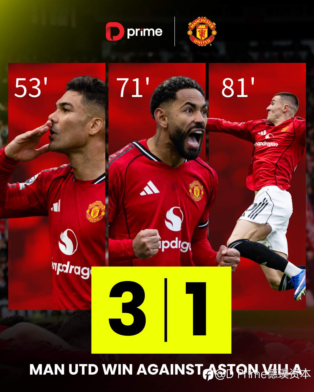 🔴曼联在对阵阿斯顿维拉的比赛中拿下关键胜利。