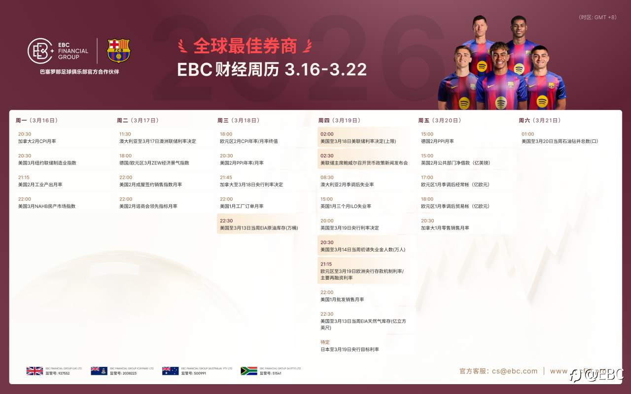 EBC交易前瞻|财经周历:2026.3.16-2026.3.22