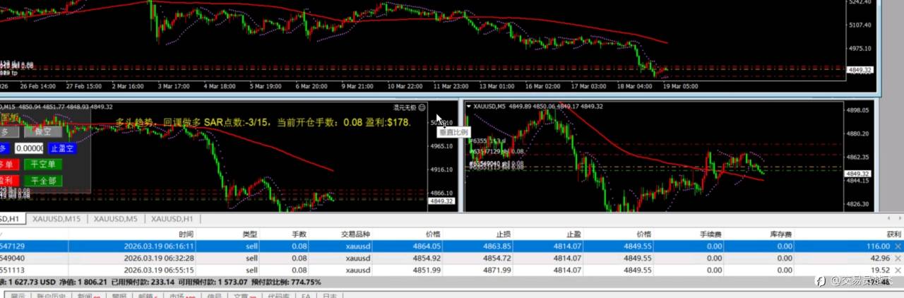 EA大成后的第一个考验,利润回吐了,庆幸的是本金还在,本来昨天开仓到上午盈利六百刀了,开空的单子顺势拿住又能大赚一笔,但是很遗憾盈利没拿住,下午还一直抄底,连续损了三次,利润都回吐了。黄金从昨天到现在,三百多美金的波动,要是按之前手动操作,可能爆的渣都不剩了,现在还能保住本金,是不是意味着第一个大波动考验,EA通过了???