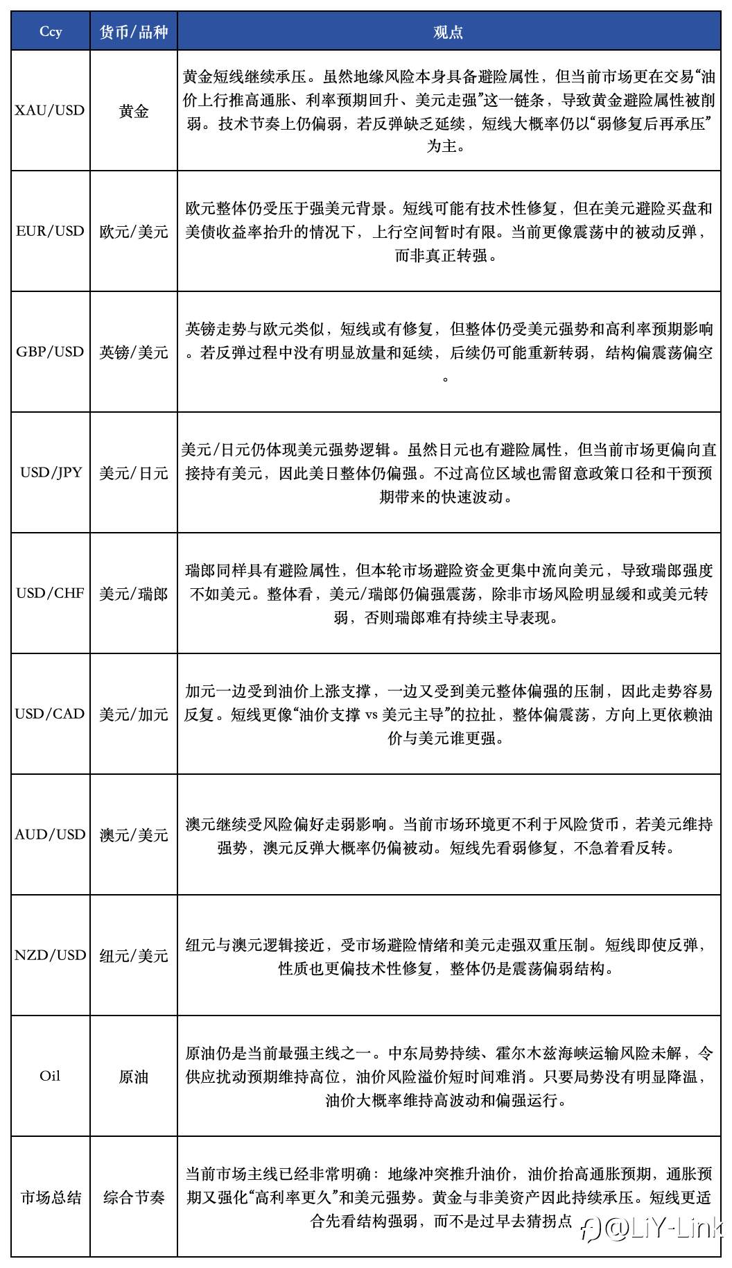 而不是直接看趋势反转。Reuters 3月23日也提到,欧元下跌、英镑与日元同样走弱,澳元和纽元等风险敏感货币承压,背后是避险买盘流向美元与美债收益率走高。