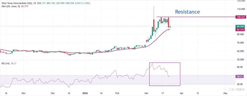 Oil holding strong near **$89** with bullish momentum intact