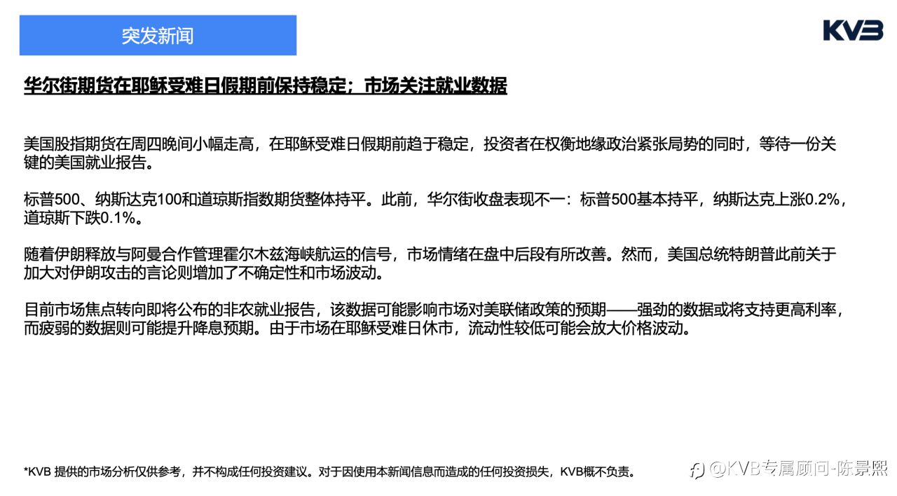 大家好!我是持牌国际券商KVB客户经理陈景熙