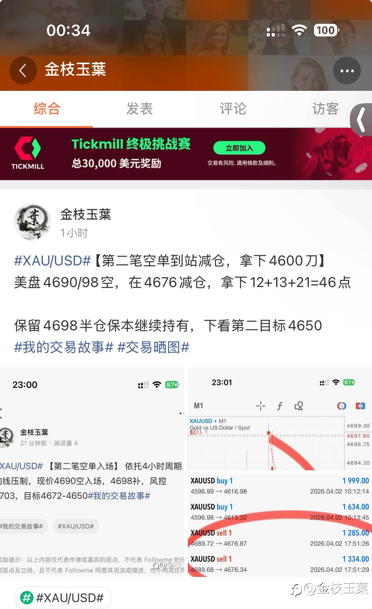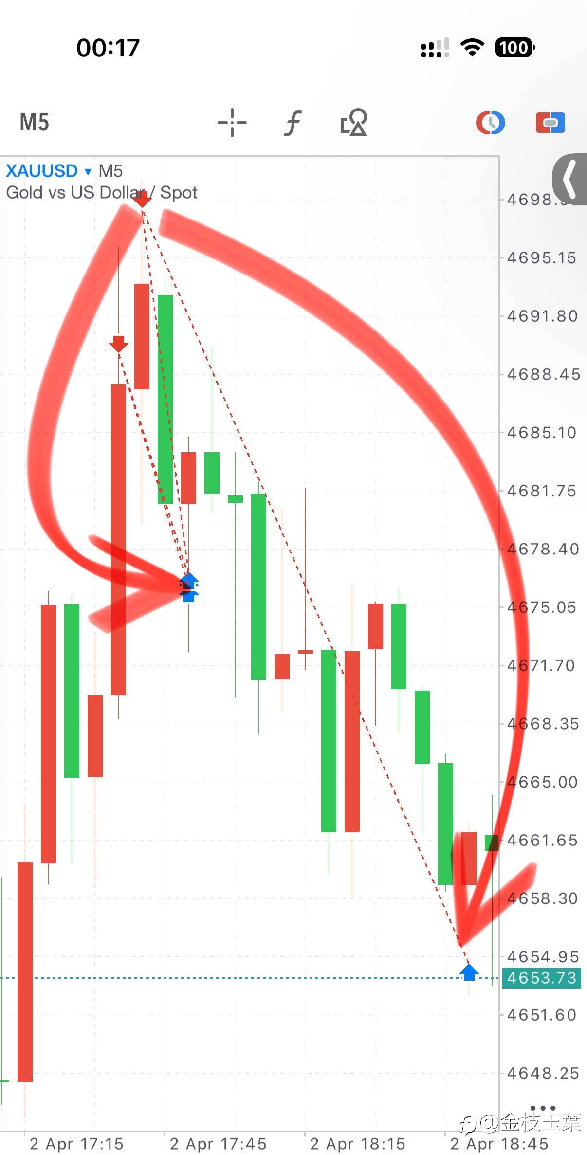 #XAU/USD# 【空单到站止盈离场,拿下9000】 4690/98空,分别在4676/54止盈离场,综合拿下13+13+21+43=90点 明日休市,今天到此结束#我的交易故事# #交易晒图#