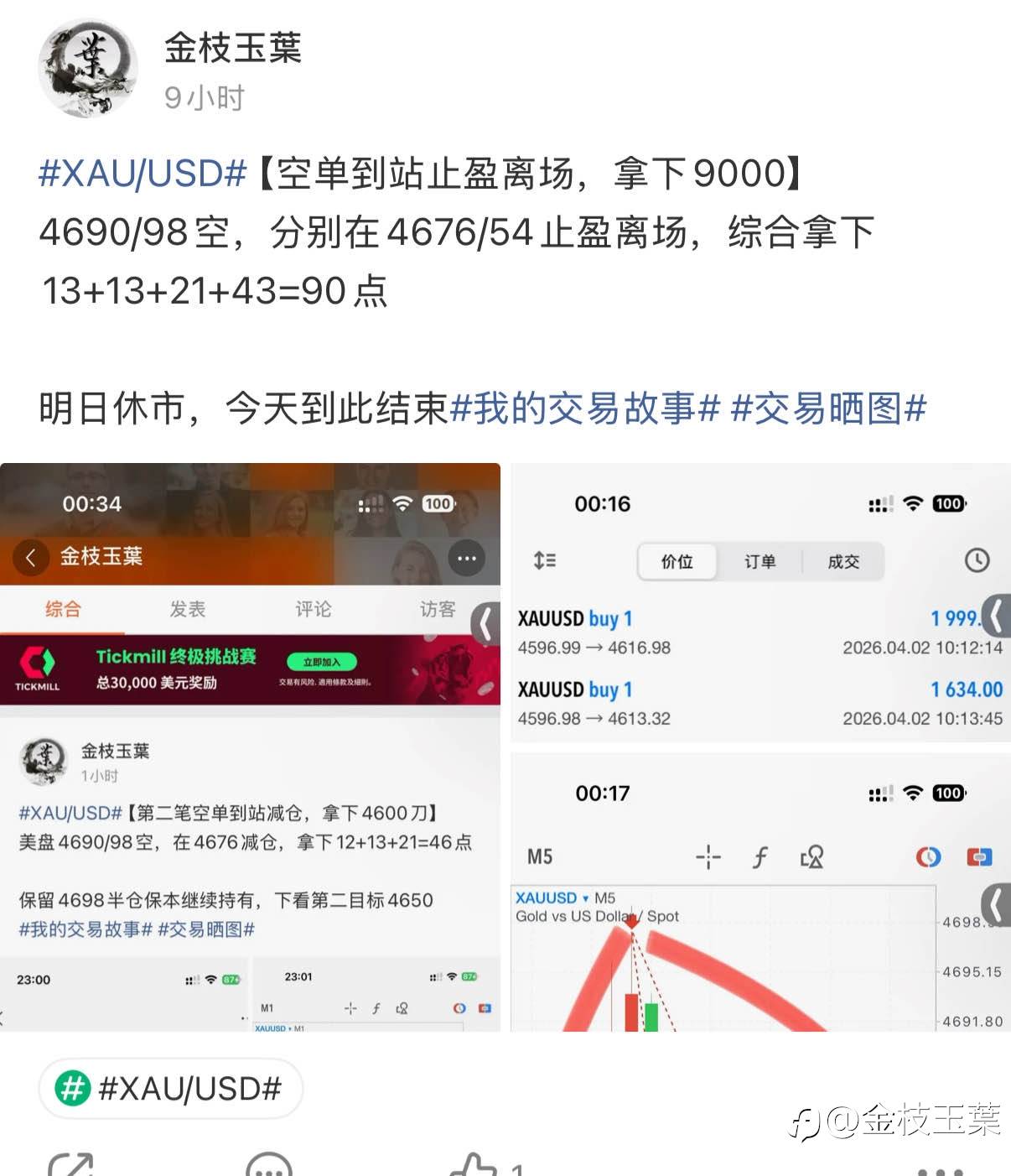 #XAU/USD# 【4/3周四结束】