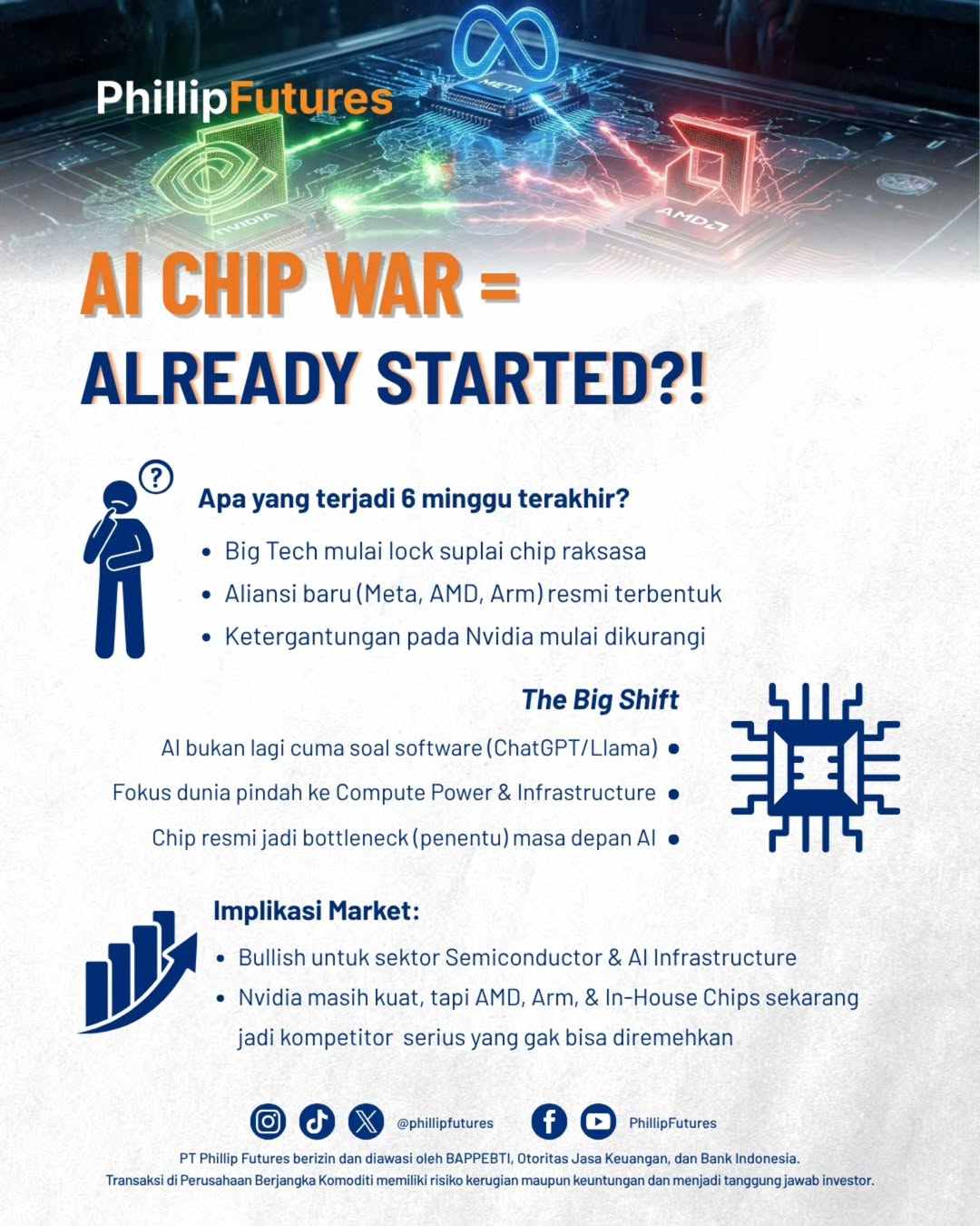ALIANSI $60 MILIAR YANG BIKIN NVIDIA KERINGAT DINGIN? ⚔️ Selama setahun terakhir, Nvidia adalah "penguasa tunggal". Tapi, peta kekuatan berubah total dalam 6 minggu terakhir. Saat monopoli chip AI mulai goyah, AI Infrastructure War pun dimulai, membawa peluang baru di industri semikonduktor. SIAP JADI PEMILIK RAKSASA TECH DUNIA? 🇺🇸 Jangan cuma jadi penonton "perang" ini. Kamu bisa ikut ambil bagian dalam pertumbuhan raksasa seperti Nvidia, AMD, hingga Meta langsung di pasar saham AS! Gak perlu modal jutaan, sekarang kamu bisa mulai investasi di US Stocks dengan fitur Fractional Shares. Beli saham blue-chip mulai dari nominal kecil sesuai budgetmu! 👉 Cek link di bio untuk mulai bangun portofolio saham AS kamu sekarang! #AIChipWar #NVDIA #StockMarket #USStocks #FractionalShares
