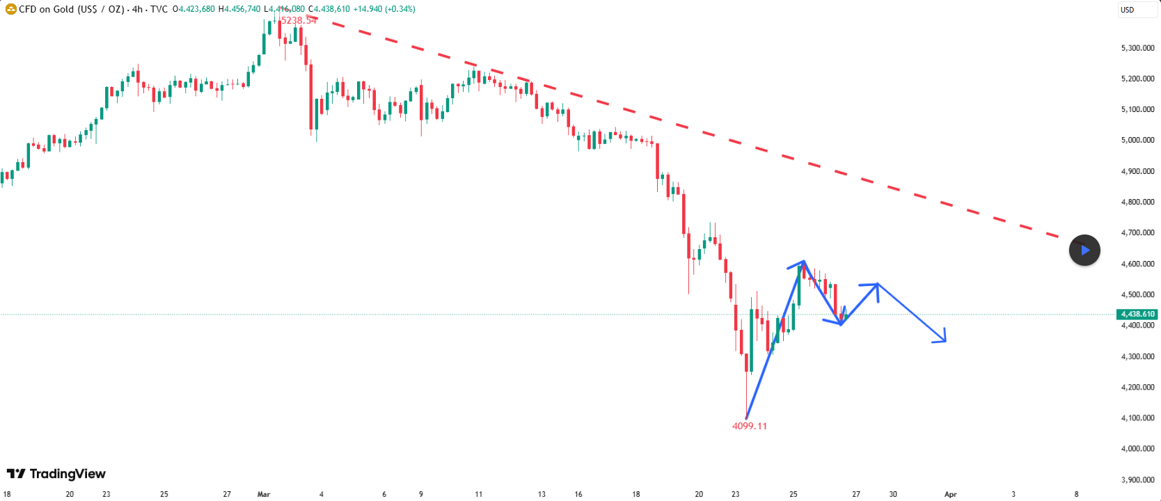 Analisis Harga Emas: Pada grafik harian, emas rebound dengan cepat setelah menguji level 4100 di awal minggu, berhasil mengkonfirmasi efektivitas level support ini. Kondisi oversold juga memberikan momentum untuk rebound. Namun, mengingat fundamental saat ini, rebound ini tidak mungkin mengubah tren