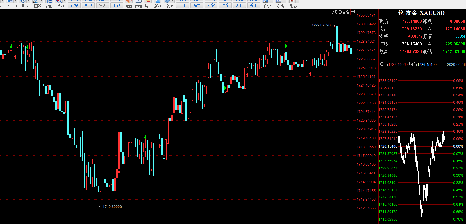 交易悟语:注意交易策略的即时性,交易亏钱,不是策略不好,而是优质策略没有连贯的执行!!还有就算是好策略,没有仓位的管理也一样会亏钱! 大家好,欢迎来到神枪营,狙击市场的短线和波段的机会。我是大道至简vv,目前自媒体已经做了2个月18天!!坚持更新策略和文章!!!言简意赅,不多说,黄金这一线,日内高点1730附近,低位1712一线,日内波动18美金,波动不算太大,一般日内波动在28-30美金,偶尔大点波动在36-45美金的日内波动。6月17日的美盘计算时间,最低1712,最高1730,对于北京时间已经是6月18日了1738美金一线不破,且跌下去的话,则黄金空头下一个目标看1707和1690一线,