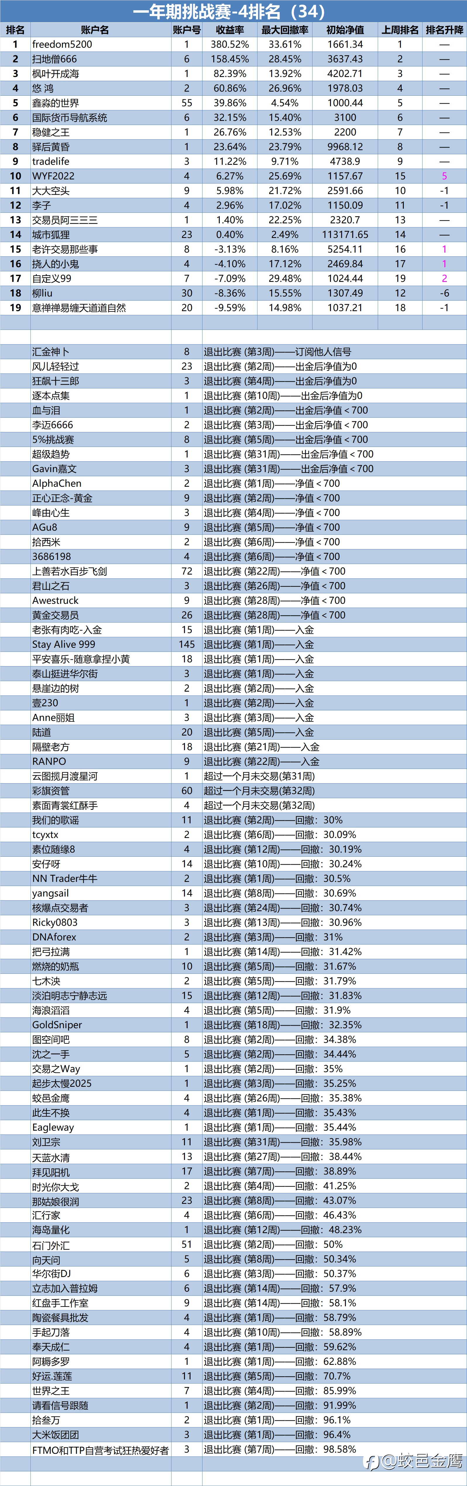 一年期挑战赛-4排名周报(34)