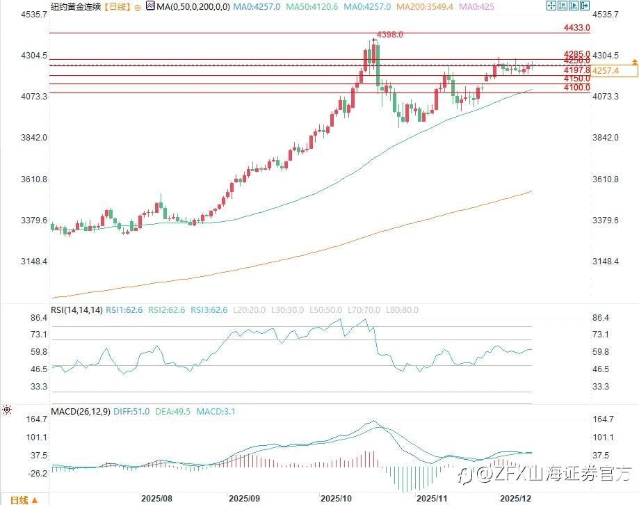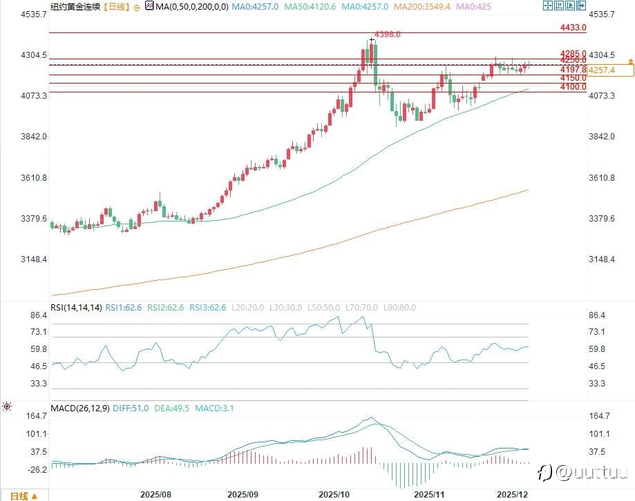周四(12月11日),随着美联储连续第三次降息25个基点,黄金价格强势反弹,现货黄金上涨1.2%,触及每盎司4285.75美元的逾一个月高点。黄金市场正处于一个关键位置,若能顶破4300关口,或许预示着新一轮牛市的开启。 一、美联储鸽派信号点燃黄金涨势 美联储的货币政策调整无疑是此次黄金价格上涨的核心催化剂。周三,美联储宣布降息25个基点,这已是连续第三次下调利率。尽管市场对此已有广泛预期,但美联储决策者的措辞和预测显示出鸽派倾向,他们强调将监测劳动力市场趋势,并承认通胀“仍然偏高”。历史上,美联储宽松周期往往伴随黄金价格的强劲反弹,此次也不例外。现货黄金在降息后迅速拉升,2月交割的美国期金结