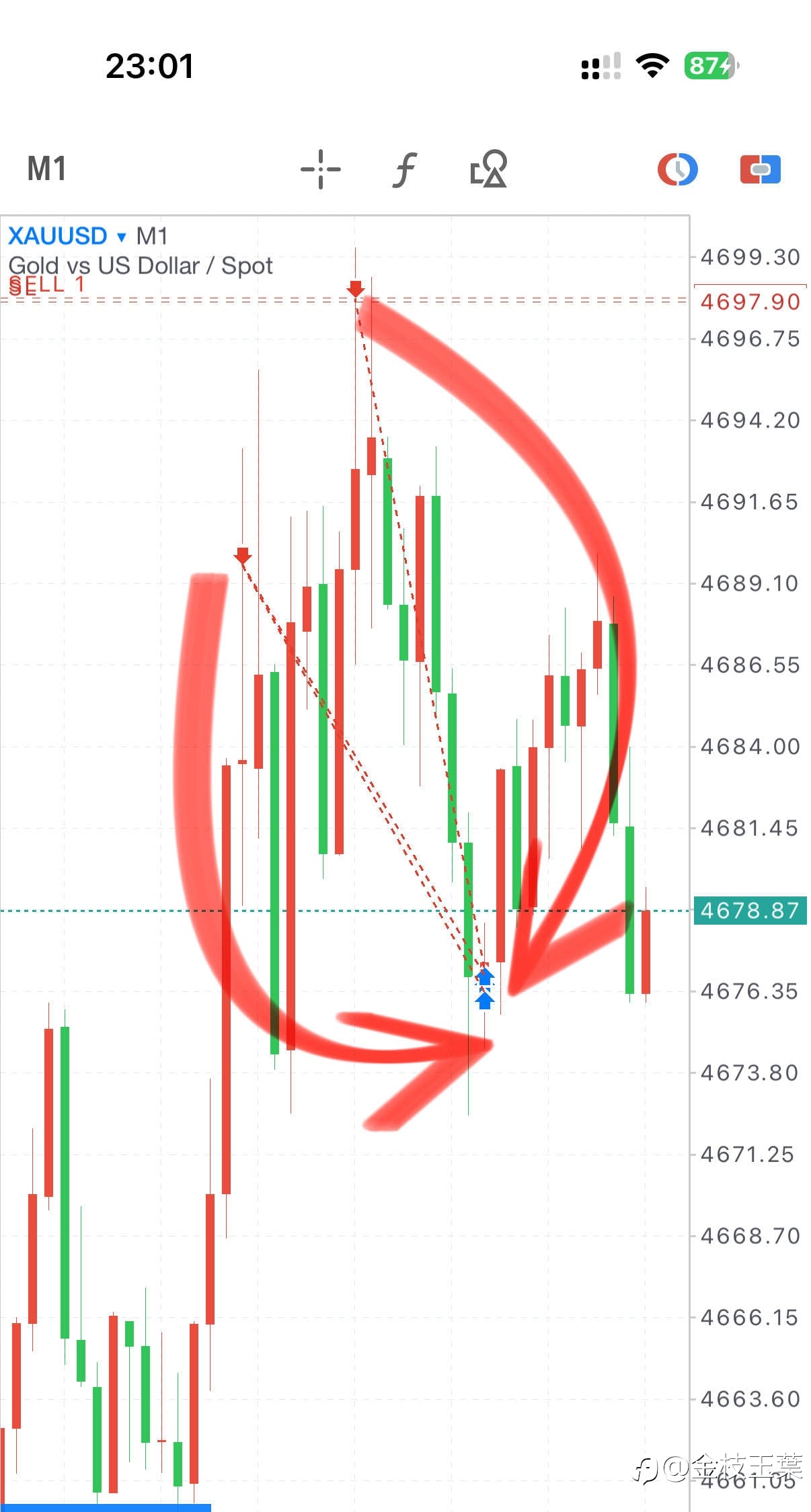 【空单到站止盈离场,拿下9000】 4690/98空,分别在4676/54止盈离场,综合拿下13+13+21+43=90点 明日休市,今天到此结束