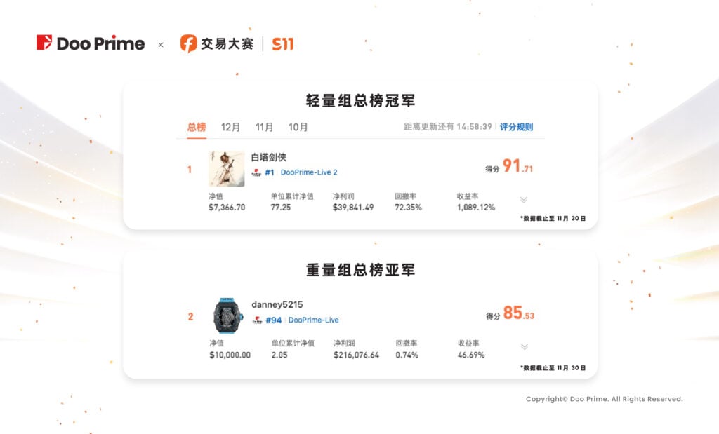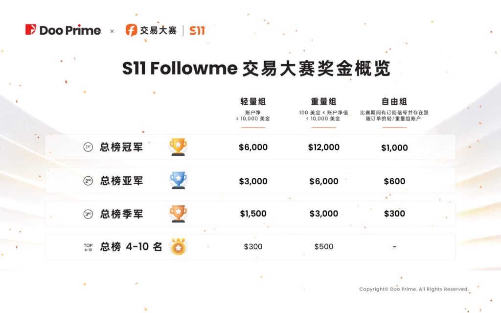 精彩活动 | Doo Prime 交易员以 20 万美元净利润,争夺 FOLLOWME S11 大赛桂冠