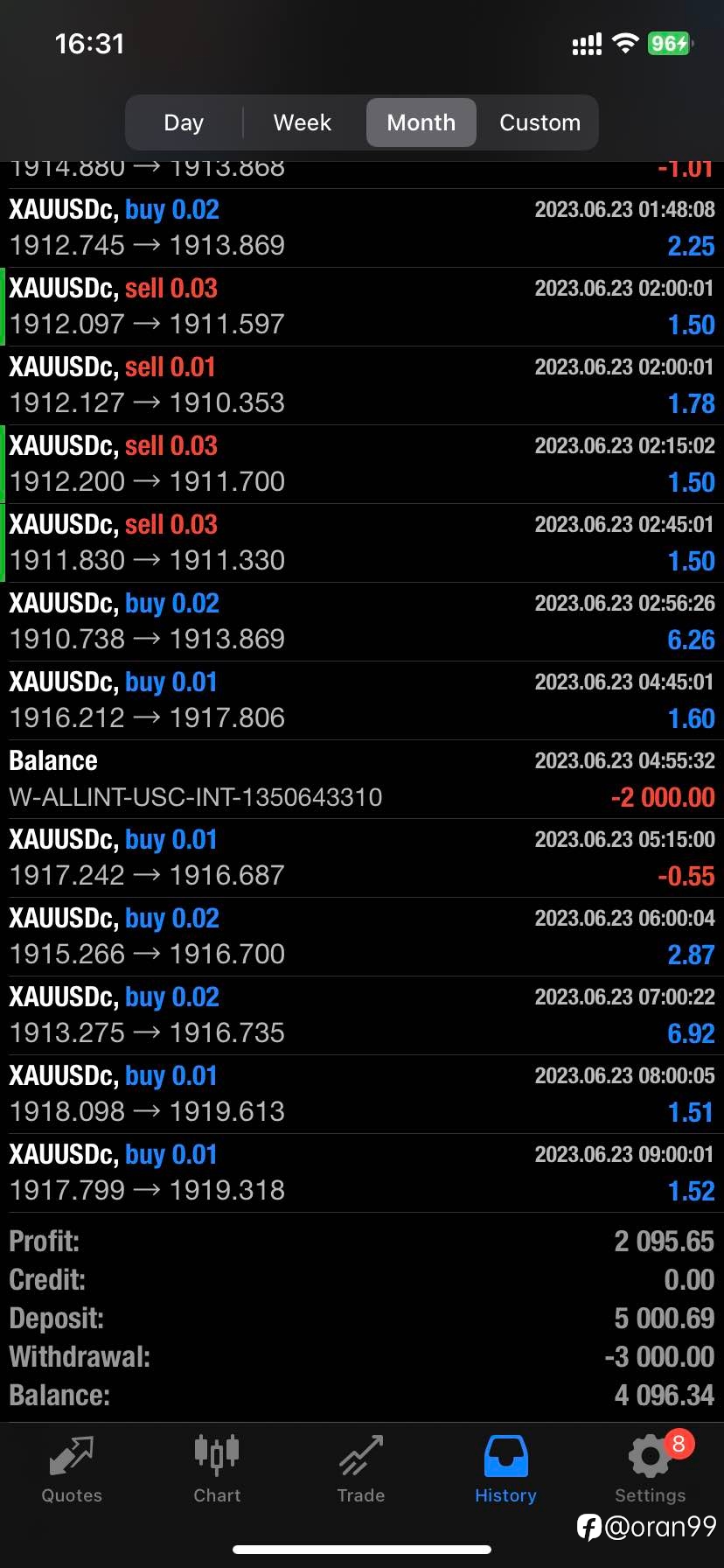 - 冲冲的芒果 :以前利用非农国内黄金报价快于mt5服务商报价赚过一笔,可惜本金太小,一直快进快出就赚了几千刀,后来再也没有遇到过这种情况了,可惜了😂。马来西亚的平台好像是叫seventy,就是杠杆小只有200倍,点差也大,不太...