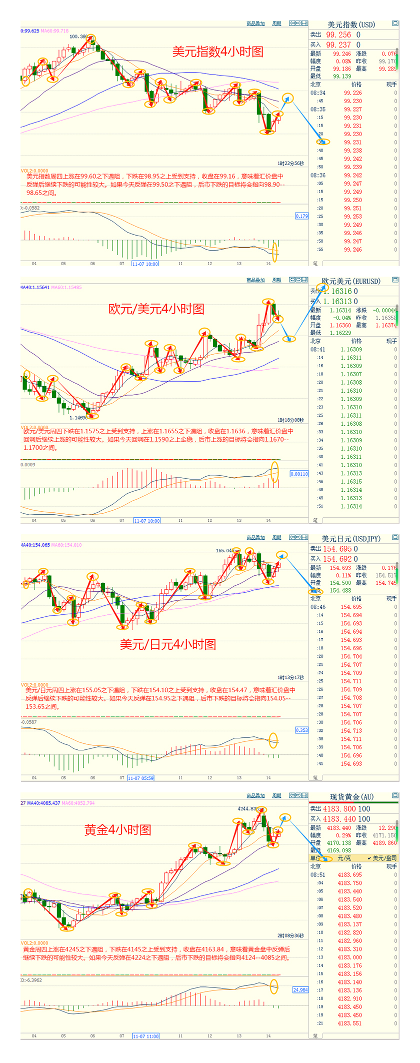 CWG Markets市场资讯2025年11月14日(周五): 汇讯摘要: 周四,随着美国政府重开,美元指数持续下行,并一度跌落99关口,最终收跌0.29%,报99.18;基准的10年期美债收益最终收报4.126%,对美联储政策利率敏感的2年期美债收益率收报3.603%。 现货黄金周四(11月13日)在盘中一度上涨逾1%触及4244.96美元的三周高点后急速回落,转为下跌1%最低触及4145.25美元/盎司,收盘下跌0.58%至4171.22美元每盎司。。交易员地指出,这是一场典型的“买消息、卖事实”行情:政府重开消除了不确定性,却让投资者集体获利了结,贵金属市场被卷入股票、债券、美