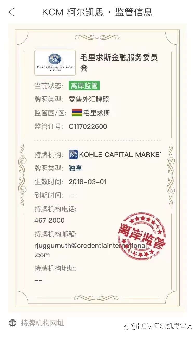 KCM柯尔凯思是一家主要为机构客户提供外汇、差价合约以及其它金融投资业务交易服务供应商,总部位于澳大利亚悉尼,在毛里求斯和香港设有直属办事处。KCM柯尔凯思持有澳洲证券投资委员会(ASIC)的普通金融牌照,被允许在澳洲提供金融服务。柯尔集团的控股母公司Lead Technology Holdings Limited于2016年在英属维尔京群岛成立,后于2018年2月成立金融衍生品交易服务品牌-Kohle Capital Markets 柯尔凯思(Kohle Capital Markets Ltd的商标名称)。