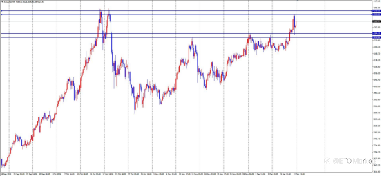XAU/USD 昨日回顾与 ETO Markets 观点 周一,黄金在亚盘震荡上行,欧盘于前高 38.2% 回调位受阻回落,美盘加速下行并跌破前低,最低触及 4176 附近(近期区间底部),全日波幅约 424 点,日线收带上下影线小阴线。市场当前聚焦“鹰派降息”预期,即美联储可能在降息同时传递谨慎信号,若此预期强化并削弱明年降息预期,美元或获支撑,从而短期压制金价。日线周期显示行情进入第7日调整,区间空间仍超 800 点,多头需时间蓄力。ETO Markets 认为,金价现抵达区间底部后尝试回调向上,但整体仍处区间内,今日策略倾向逢高做空。 关键点位与操作建议 关键点位:上方阻力关注 4290