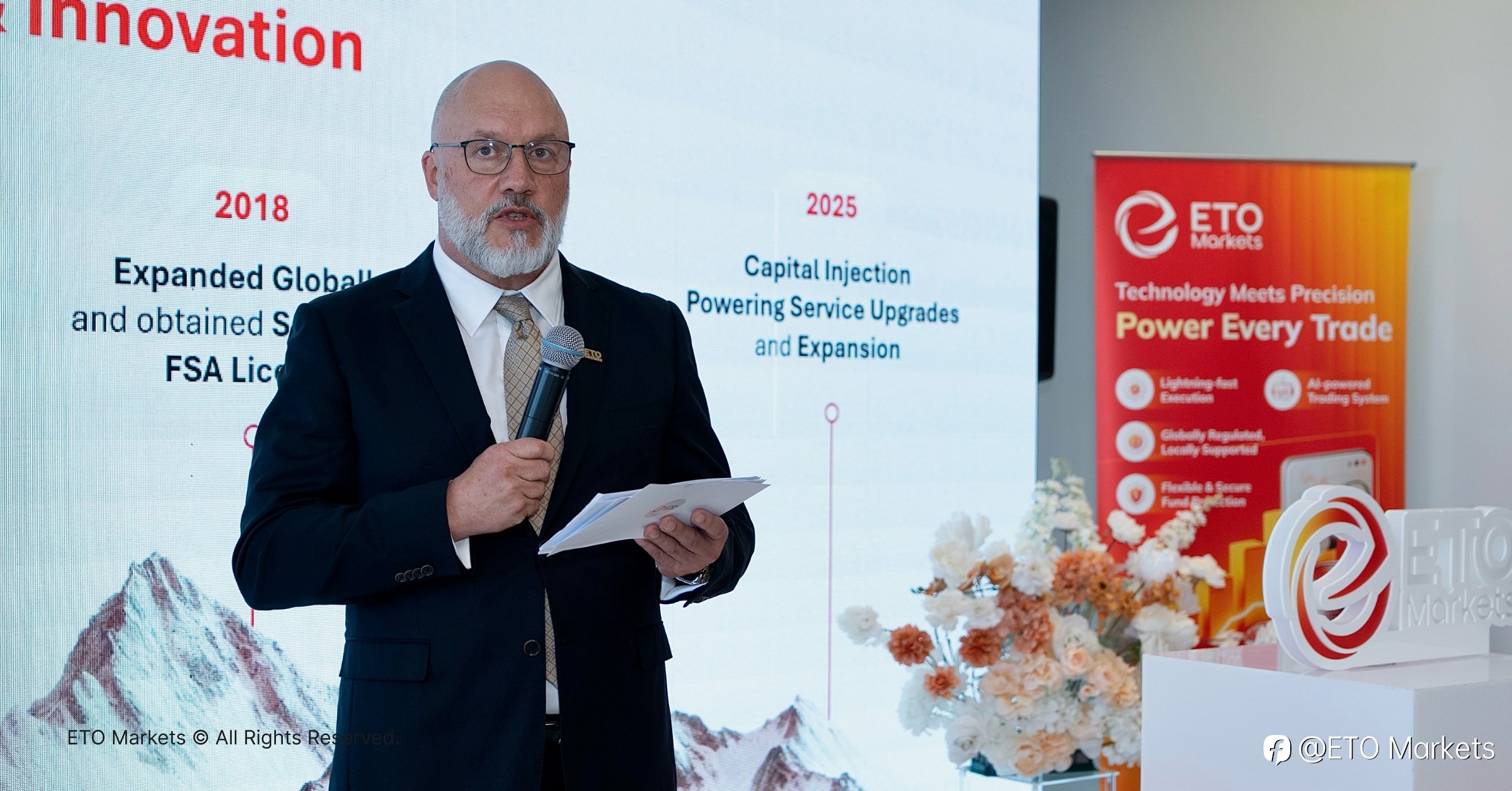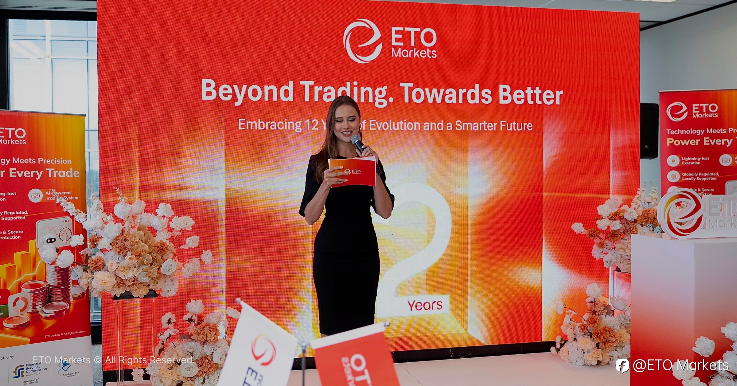 十二载风雨兼程,十二载携手共进。在悉尼和煦的阳光下,来自各地的合作伙伴、行业人士与媒体嘉宾齐聚 ETO Markets 澳洲总部,共同见证品牌升级发布会暨十二周年庆典的荣耀时刻。 这是一场属于 ETO Markets 的重要里程碑,一次承载着成长、革新与未来愿景的高光时刻,也象征着品牌正式迈入全新发展阶段。 群贤毕至,盛会启幕 当日会场宾朋云集,签到区人潮涌动、氛围热烈。来宾们在 ETO Markets 全新的品牌背景墙前驻足合影,记录下这一意义非凡的瞬间。 此次盛典,不仅是对十二年发展的深情回望,更是品牌加速向前的全新起点。 开启新声:坚守与创新同行 在热烈掌声中,ETO Markets 董