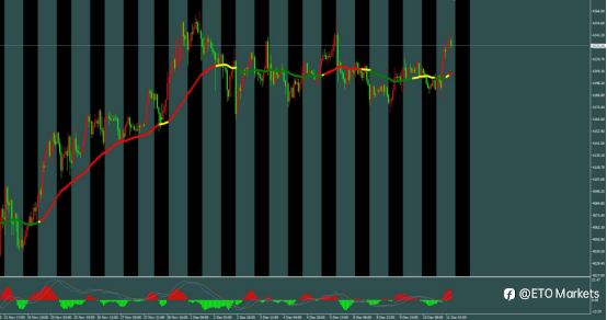 XAU/USD 昨日回顾与 ETO Markets 观点 周三,黄金亚盘震荡上行至前高附近后受阻回落,欧盘加速下行至前低 61.8% 回调位,随后进入横盘震荡。美盘创出日内新低后快速企稳回升,并于收盘前上破前高,最高触及 4238 附近,全日波幅约 568 点,日线收带长下影的阳线。凌晨美联储如期降息 25 个基点,但因内部分歧释放“鸽派暂停”信号,美元与美债收益率走低,推动金价拉升。当前 4 小时图收大阳,MACD 于 0 轴上方形成金叉,但价格尚未突破整理区间。早盘续涨至 4247.5 附近后回落,日内策略建议回调后逢低做多。 关键点位与操作建议 关键阻力:4265,4290关键支撑:42