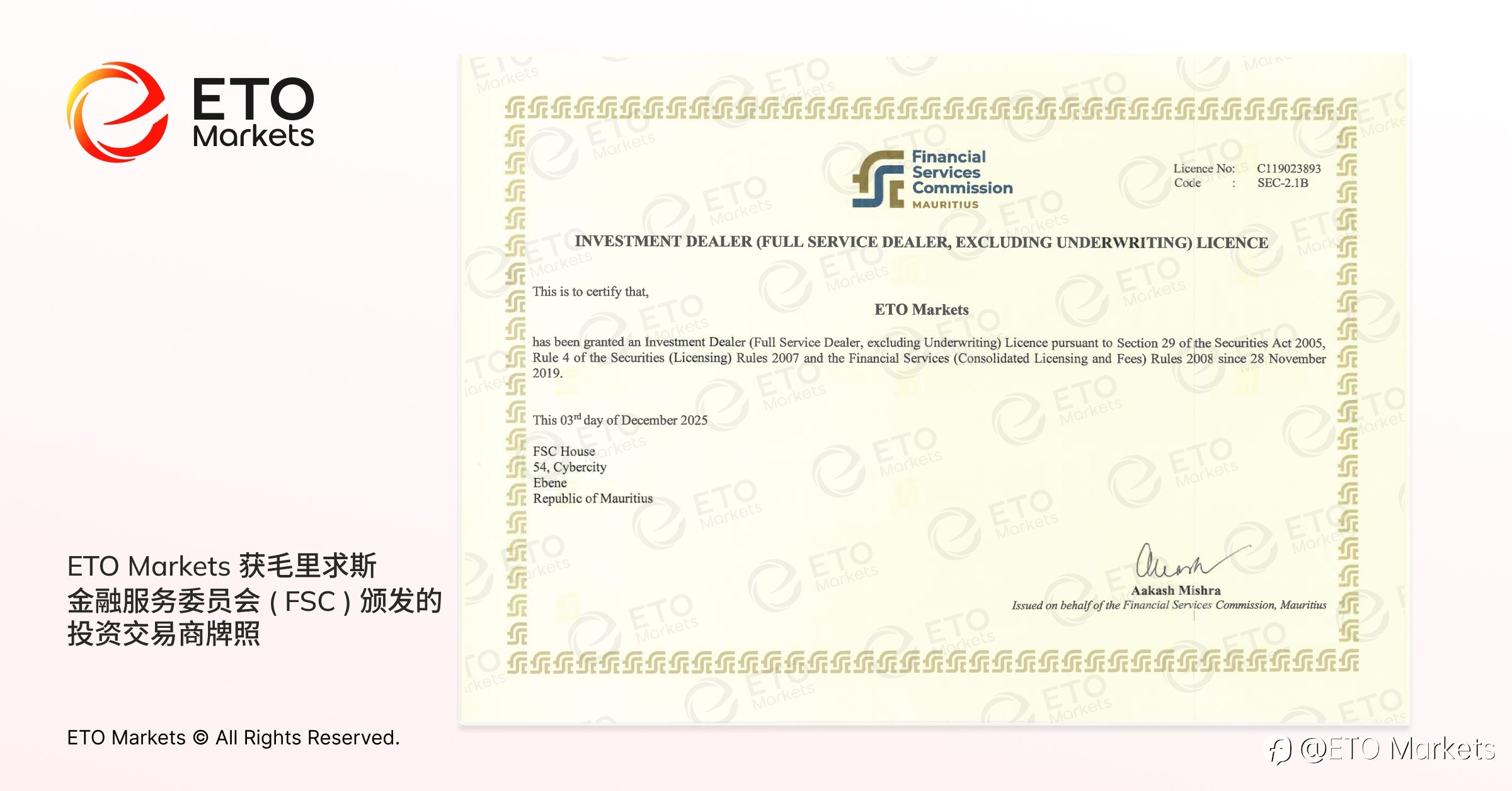 ETO Markets 获毛里求斯 FSC 监管许可,全面强化客户保障