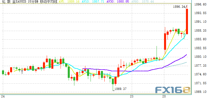 [FX168 Hong Kong] Tuesday (October 20) in Asian markets, the U.S. dollar index was basically stable and is now near 93.45; spot gold fell rapidly in the short-term, and the price of gold just fell below the $1,900 per ounce mark.West limited the passage of the stimulus bill before the general electi