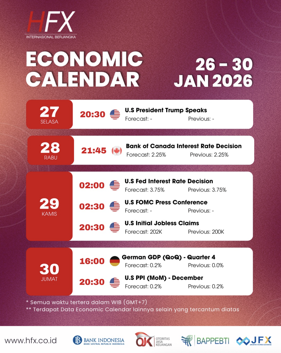 📅 Kalender Ekonomi 19 - 23 Januari 2026
