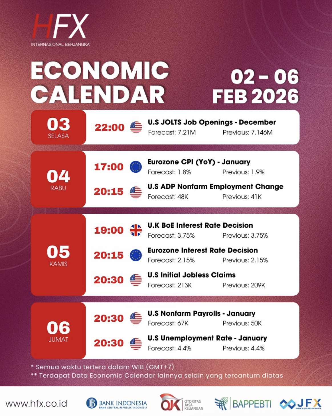 📅 Kalender Ekonomi 2 - 6 Februari 2026