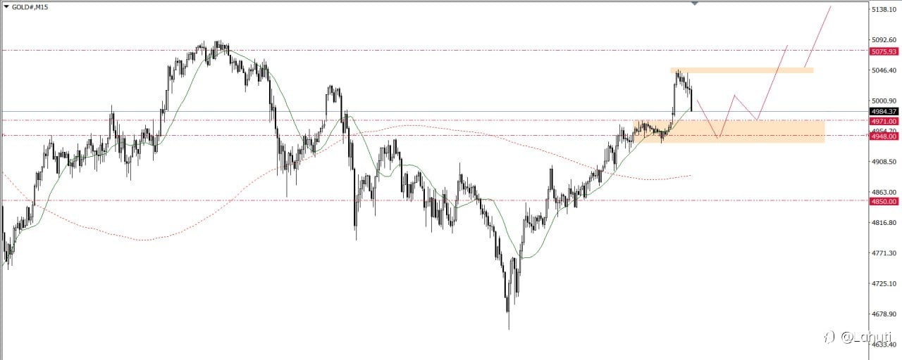 #gold (05/02/2026) - Giá về cơ bản vẫn đang duy trì được đà tăng nên tui vẫn thiên hướng giá còn tăng thêm nhịp nữa - nếu nhanh thì cuối ngày hôm nay sẽ Short được. Dự phóng giá hôm nay: 1. Giá giảm lại từ đây thì điểm mua là quanh 4945 với stp 30gia. Oánh về 5001 - 5070 và 5146 2. Giá tăng l