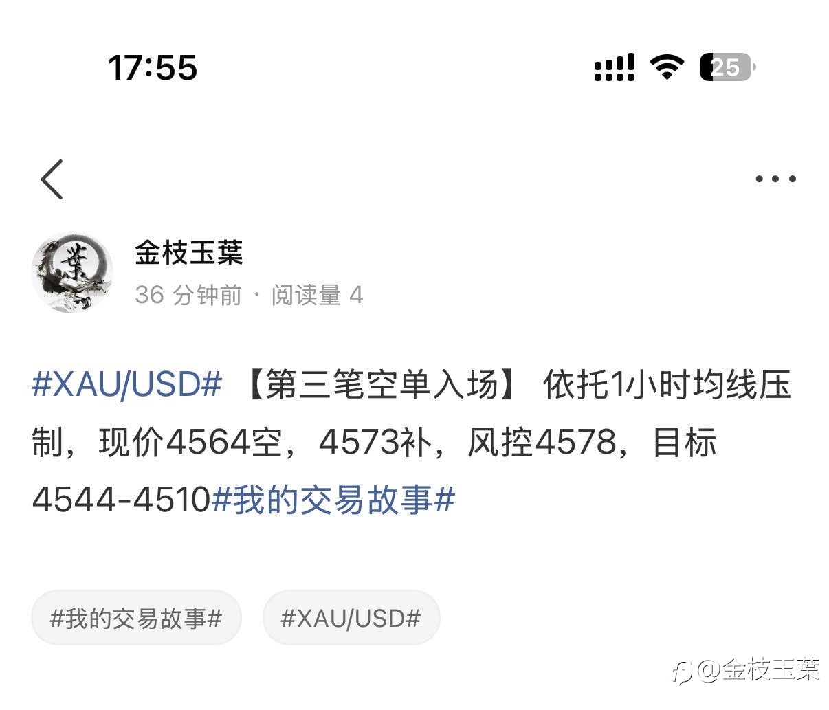 【第三笔空单入场】 依托1小时均线压制,现价4564空,4573补,风控4578,目标4544-4510