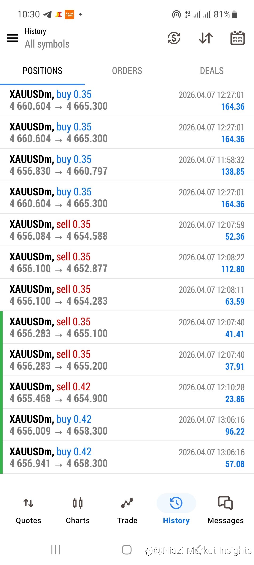 - Niazi Market Insights :The volatility is crazy! 😱 Before we could even blink, Gold smashed TP1! Gold Sell Hit Tp1 - running 130pips We are on another level today. Let's go!