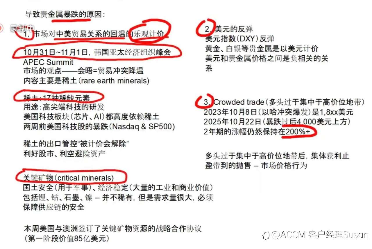 #外汇交易对你生活有哪些影响#昨天从塔州回归交易员的生活,虽然人出去玩了,但挂着的EA一直没有停。很多人都认为外汇是个高风险高回报的投资,其实控制好风险和合理配资,外汇也可以成为中长期投资。 10月27号花旗下调黄金目标价至3800美元,推动了程序化抛售将黄金从三角型打了下来。这几天黄金在4000上下,表1回顾了自21号黄金暴跌的背景。 前期多头获利了结在4000上方形成了很多站岗的单子,黄金短期上行必然存在压力。超卖修复需要时间。 同时,芝商所CME利率期货显示12月降息概率降至45%,美元强势或延续至11月非农数据公布。 美国债务不可持续性,去美元化,AI科技股泡沫风险
