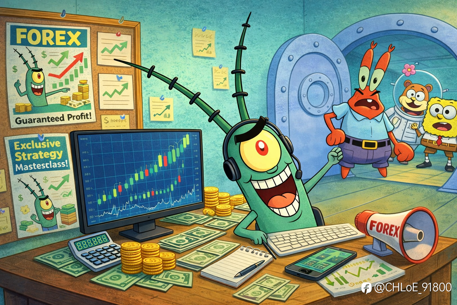 在蟹老板和珊蒂的指导下,海绵宝宝不仅掌握了稳健的外汇交易技巧,还慢慢养成了理性规划资金、严守交易纪律的习惯,账户里的小额收益稳步积累,再也不会像以前那样盲目交易、冲动跟风。 可比奇堡里并非所有人都懂得理性做外汇,擅长投机取巧、总想着走捷径赚快钱的痞老板,盯上了刚入门外汇交易的小伙伴们,摇身一变成为“外汇策略大师”,悄悄设计了虚假交易策略骗局,不少缺乏经验的小伙伴不慎中招,就连刚稳住节奏的海绵宝宝,也差点被套路。 今天,蟹老板、珊蒂和海绵宝宝,就一起拆解痞老板的虚假策略骗局,教大家如何辨别外汇交易中的陷阱,守住交易本金、稳健盈利。 痞老板一直嫉妒蟹老板的生意红火,也羡慕海绵宝宝凭借正规交易技巧慢