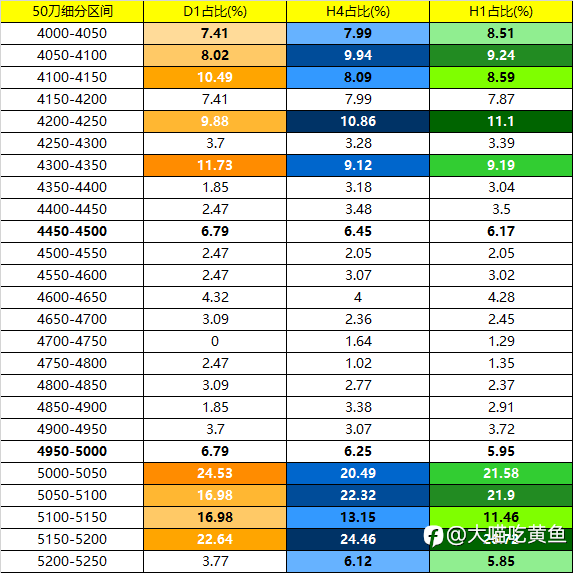 对XAUUSD做了价格切片分析