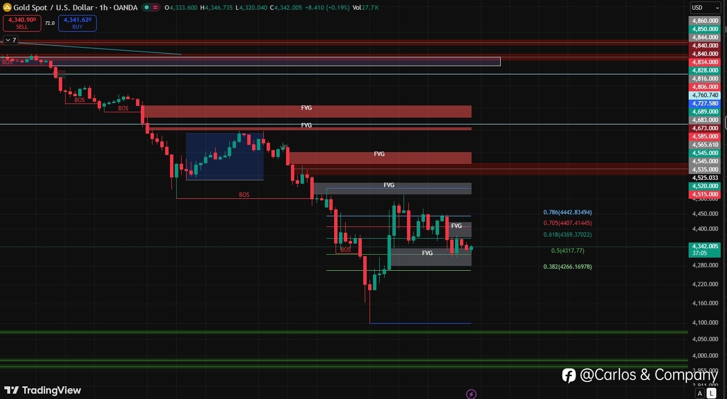 Updated Market Structure Gold continues to show strong bearish dominance, with price forming consistent lower highs and lower lows. Multiple Break of Structure (BOS) signals confirm sustained downside pressure. 🔍 Market Structure Insight • Strong bearish continuation trend • Weak pullbacks indicate