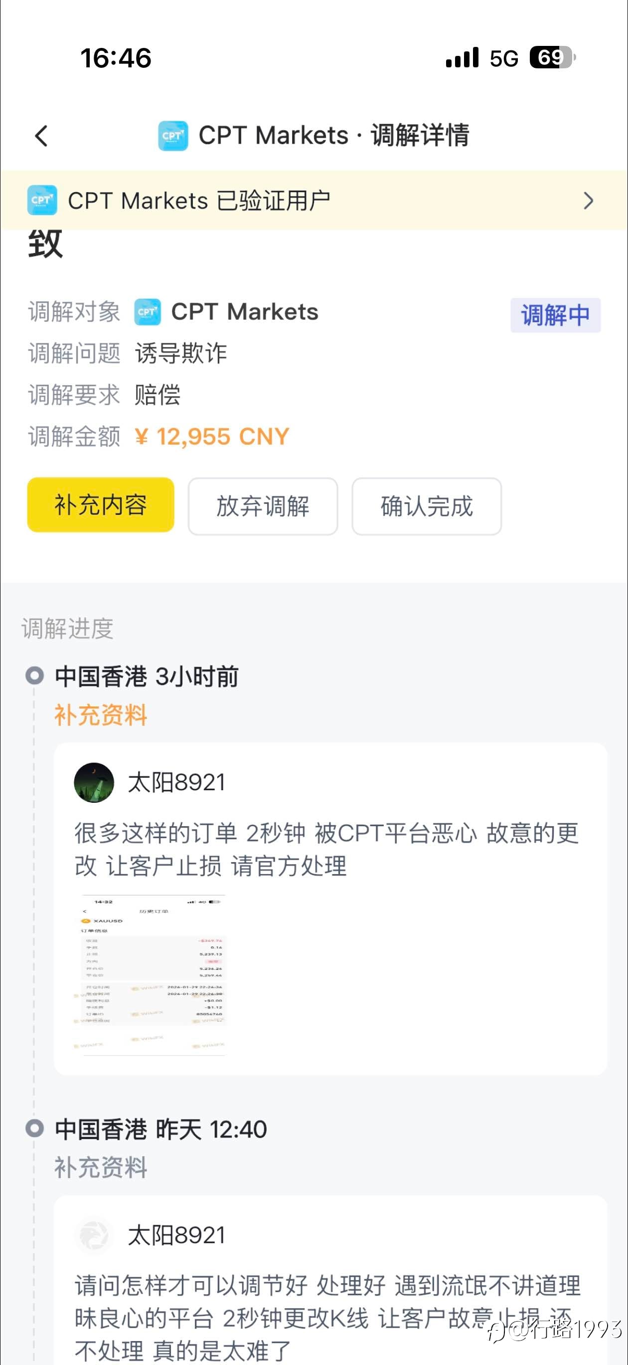 CPT平台恶意更改K线 让我2秒钟账户穿仓 客服经理不作为 平台在推脱 真的是黑平台 我要求CPT平台退还我1850美金本金