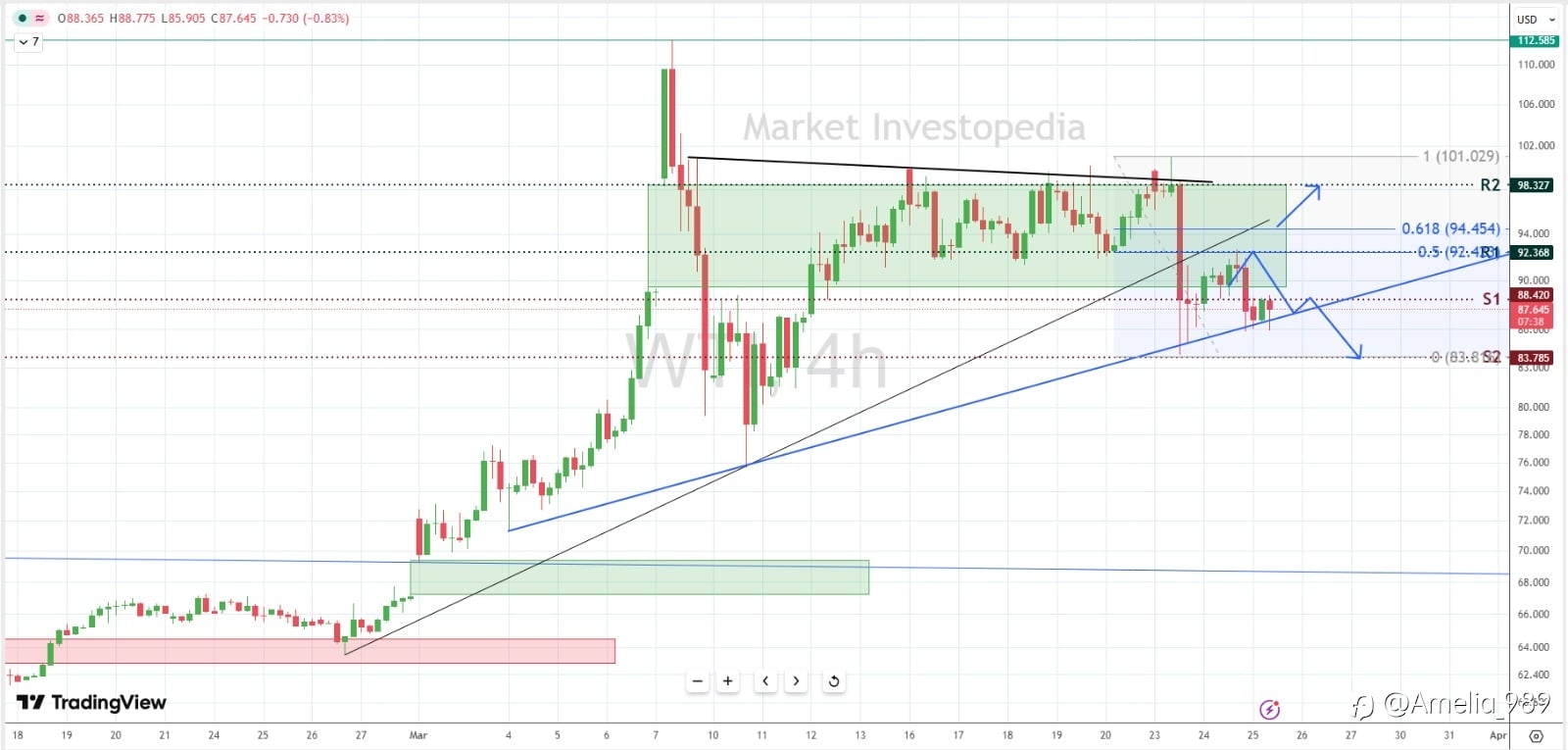 Currently, oil is trending below the previous S1 (88.40) at 88.00 Now, prices are taking support of the blue ascending line, and if breached the lower support level could be witnessed today. ...