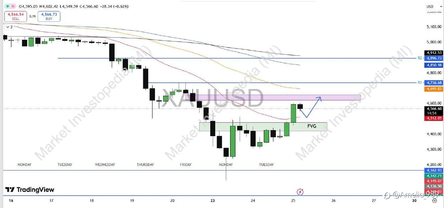 GOLD After sweeping December lows, gold is showing signs of a bottom with a strong reversal from the lows. It can now move toward the 4600–4650 resistance zone, where a bearish FVG and the 100 EMA ar...