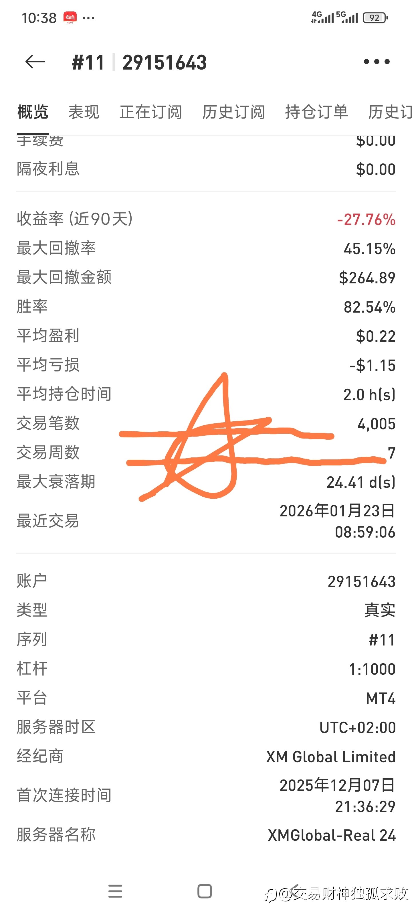记录一下自己的数据,7周做了4005笔交易,这一条我很自豪!估计FM社区没几个人能做到这么高频!!!?