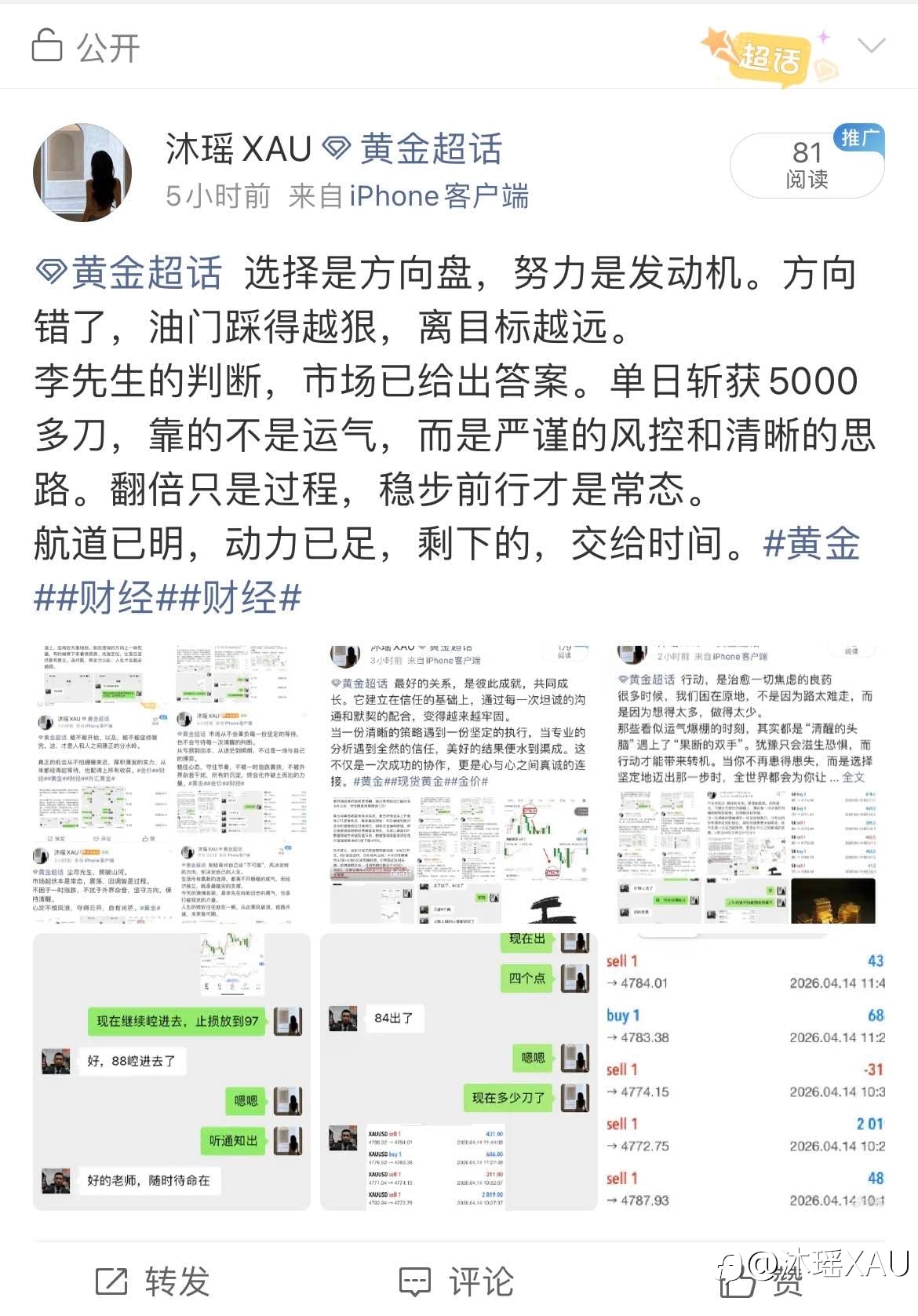 选择是方向盘,努力是发动机。方向错了,油门踩得越狠,离目标越远。 李先生的判断,市场已给出答案。单日斩获5000多刀,靠的不是运气,而是严谨的风控和清晰的思路。翻倍只是过程,稳步前行才是常态。 航道已明,动...