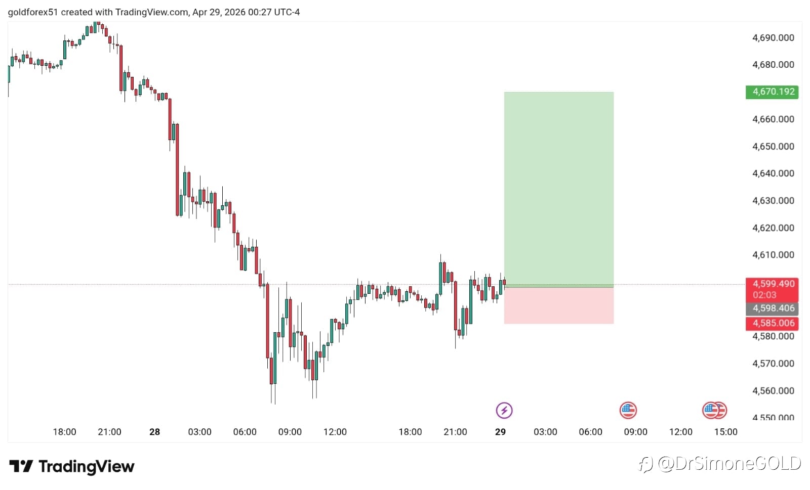 $XAUUSD 買入 入場價:4598 目標價1:4640 目標價2:4670 停損價:4585